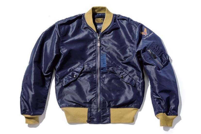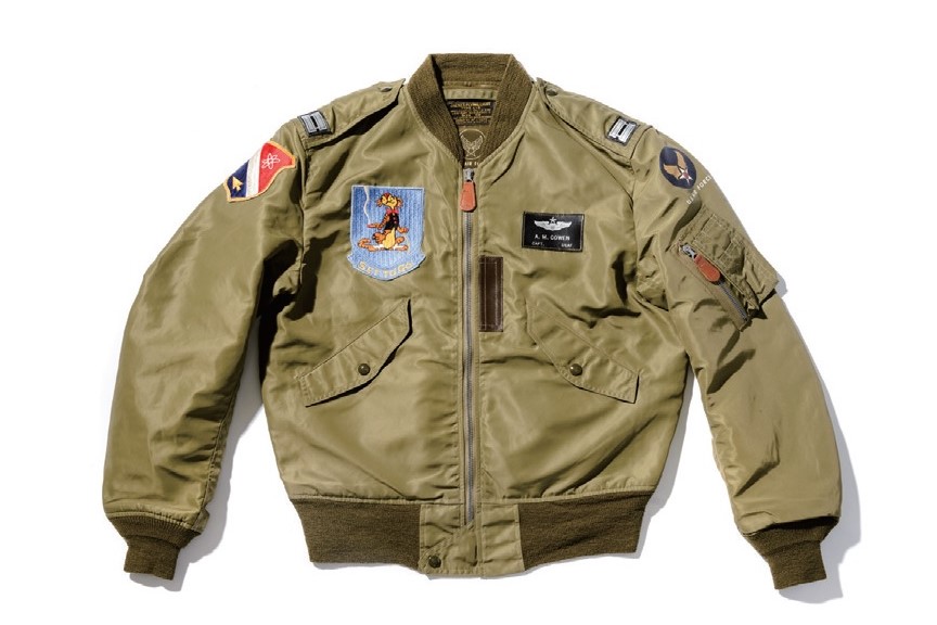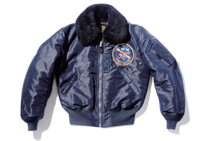 エアフォースブルーのナイロンシェルが特徴のCタイプ。米空軍の第6147戦術統制飛行隊のスコードロンが左胸に付属。実は1954年2月、日本に新婚旅行中だったマリリン・モンローは、突然韓国に駐留していた米軍を慰問。その時彼女もこれを着た。