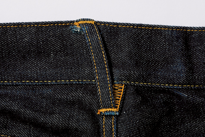 飾りステッチを折り返し部分に食い込ませた独特なデザイン。