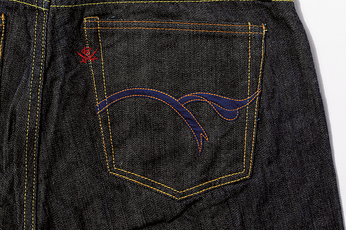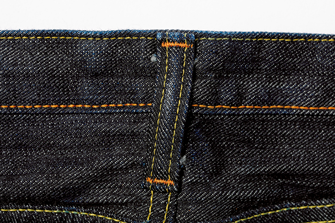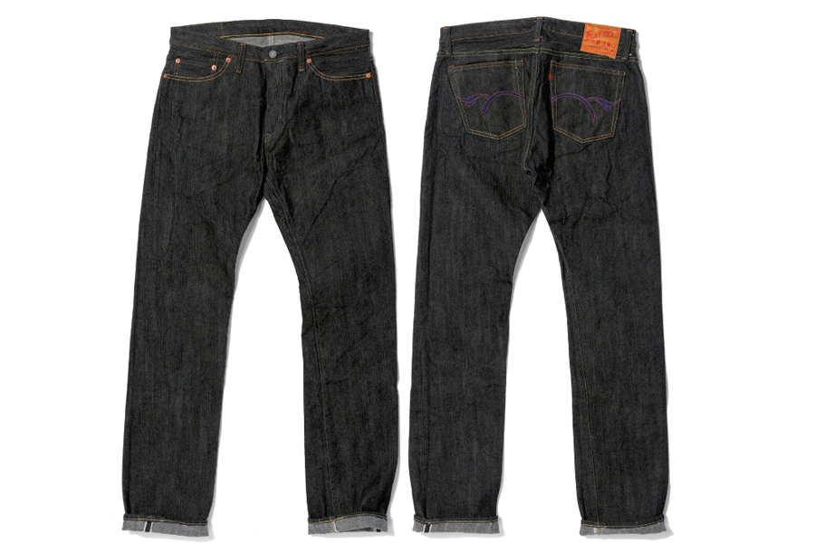 フラットヘッドとのコラボレーションで誕生したモデル。股上浅めのタイトシルエットだが、丈夫さとしなやかさに優れるジンバブエコットンを旧式シャトル織機で左綾に織り上げたデニムを使用するため、穿き心地の良さと、ハッキリとした縦落ちを実現する。