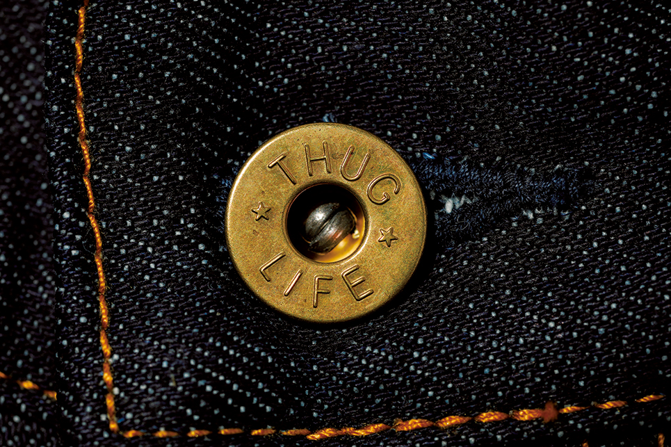 THUG LIFEの文字が描かれるオリジナルのドーナッツボタン。