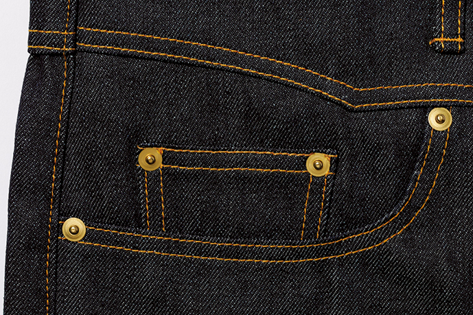 太もも回りにはややゆとりを持たせ、緩やかに裾にかけてテーパードするスッキリとしたシルエットだが、細すぎず男臭さを残した絶妙なシルエットに仕上げられた一本。デニムパンツでは珍しい、遊び心の効いたウエスタンのような切り替えが無骨なイメージを強調。