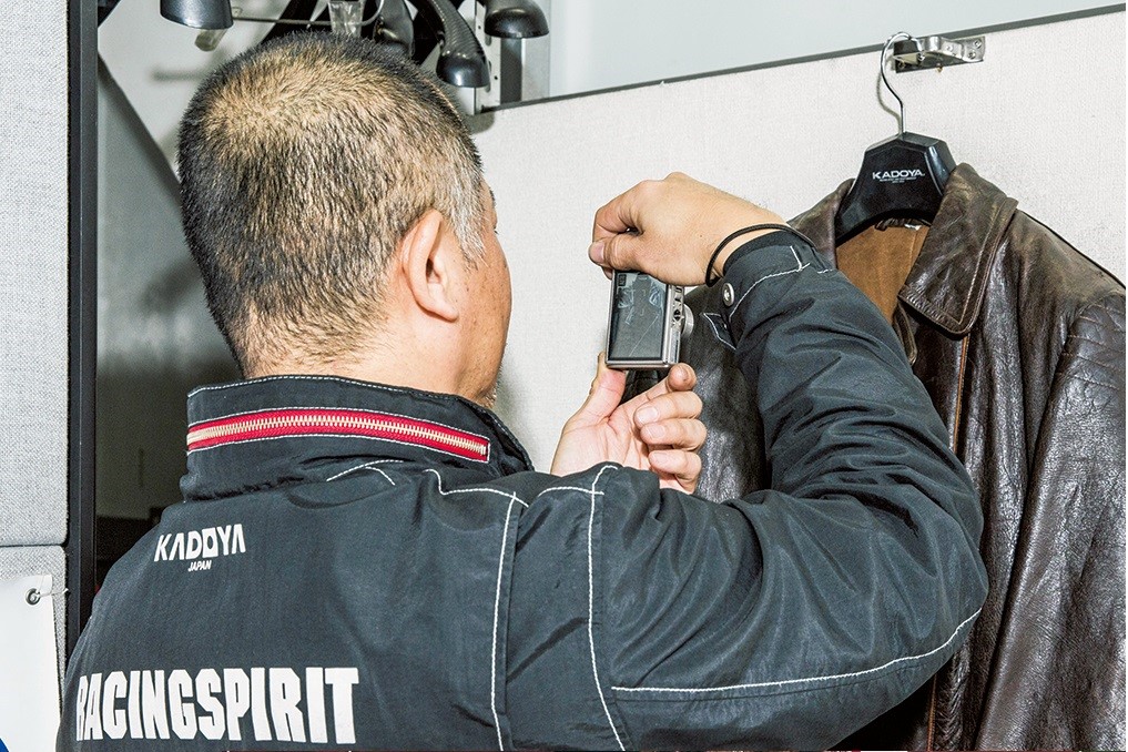 乾燥後に最終点検を行い、問題なければオイルアップで仕上げる。ライニングのシワもアイロンで伸ばすなど、裏地にもしっかりとケアしてくれる。