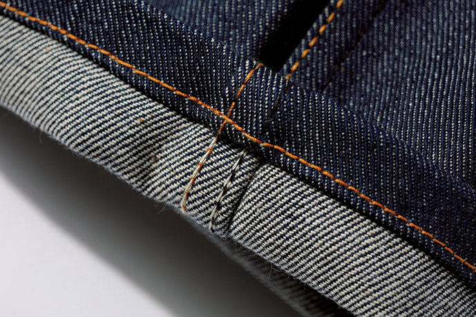 巻き縫い縫製のためセルビッジがなく、すっきりとした印象だ。