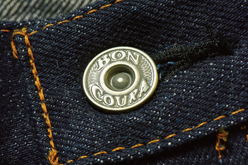 ’60 年代のジーンズをベースに、ミリ単位でテーパードを調整したという細身のストレートシルエット。5種類の太さのステッチを使い分けているのもポイント。オリジナルの約15 オンスのデニムは、原綿からこだわり、旧式の力織機で織り上げた力作である。