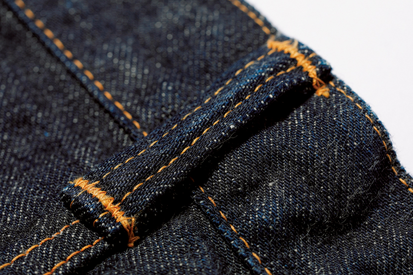 米国の原綿から紡績したムラ糸を使用して昔ながらの力織機で織り上げたセルビッチデニムは独特の風合いと柔らかさを持つ。