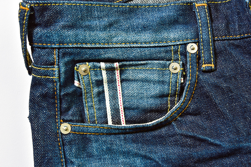コインポケットの生地にもアクセントにセルビッチ生地を使用。