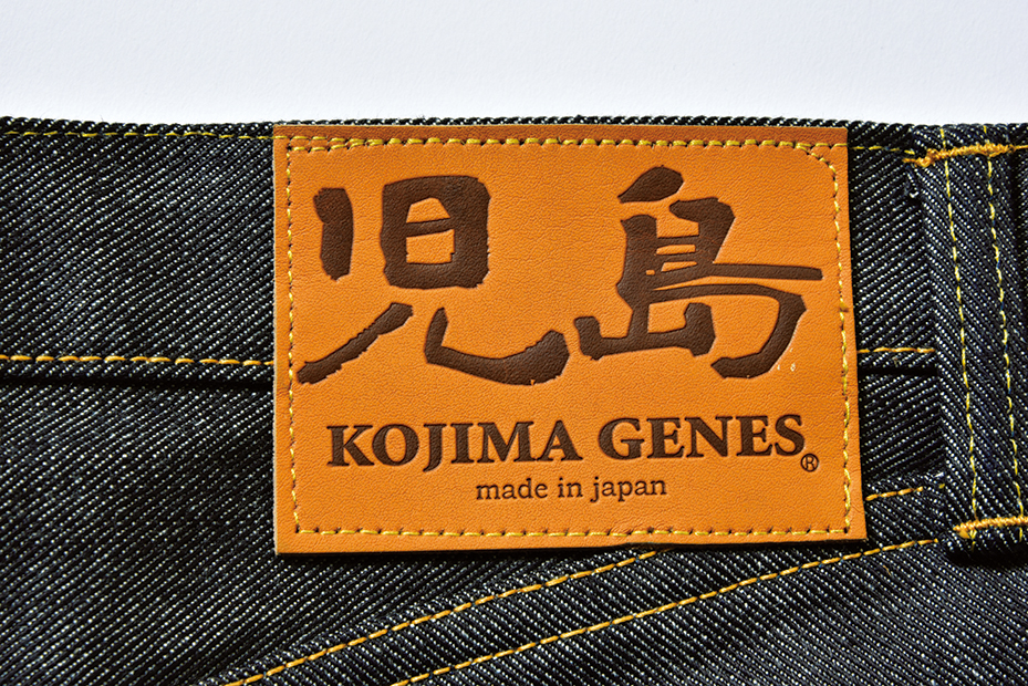定番ラインのジーンズに付けられる児島オリジナル革パッチ。