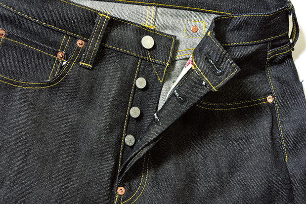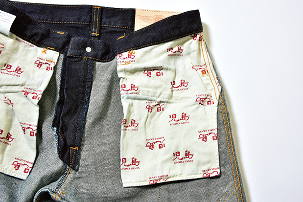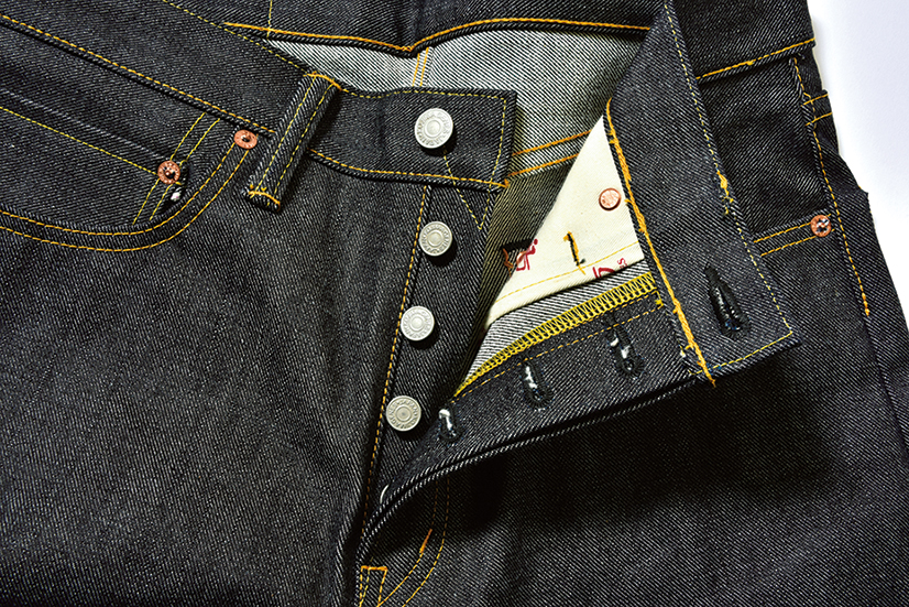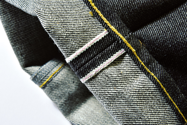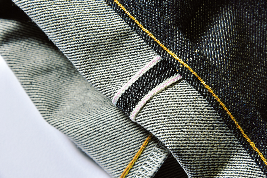 セルビッジには薄赤色のステッチが施されている。