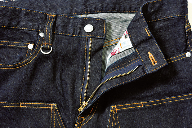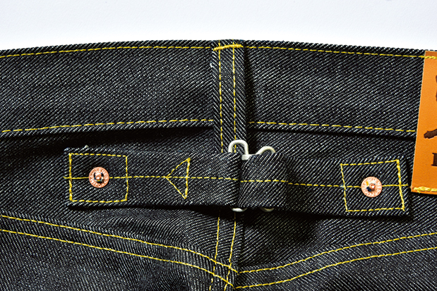 ジーンズがまだワークウェアだった、旧きよき時代のディテールであるバックシンチを採用。荒削りなフィット感が楽しめる。