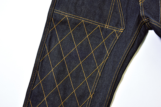 児島ジーンズが開発したケブラーミックスデニム。生地のヨコ糸に高機能素材「ケブラー」を織り込み、熱や摩擦、切創などに強い耐久性を実現。その特徴を保ちつつ、高い伸縮性を持たせた「ケブラーミックスストレッチデニム」。そのフラッグシップモデルだ。