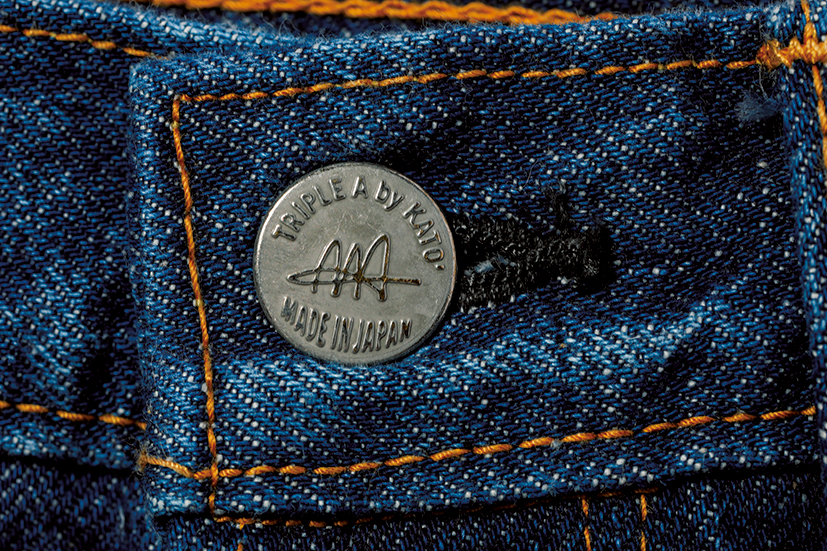 トップボタンにはブランドネームとMADE IN JAPANのネームを刻印。
