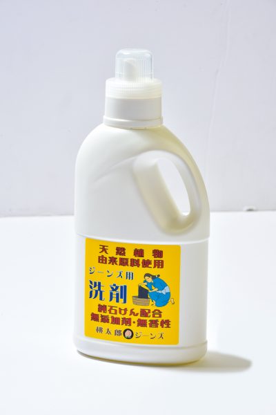 “洗いざらしの様な仕上がり” を目指した桃太郎ジーンズの洗剤。ヤシ油を原材料とした無添加・無香料で、ジーンズを手洗い、つけ置き洗いする際も手荒れを気にしなくていいためジーンズを頻繁に洗濯するデニムラバーたちにとっては心強い。