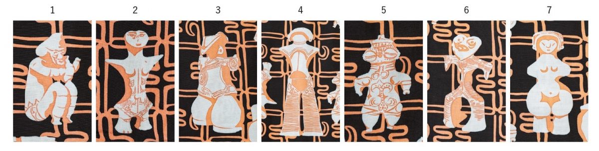 このシャツ、よく柄を調べてみると、まったくカタチの違う、しかしどこかユーモラスでグラマラスな土偶たちが、なんと7種類も描かれている。俺なんて、社会の資料集に出てくる、目のでかい「遮光器土偶」しか知らなかったので、これを着ているだけで、土偶図鑑を持ち歩いているような気にさえなってしまうのだ。せっかくなので、この土偶たちの種類を調べてみた。その成果を下に記した。お楽しみあれ。