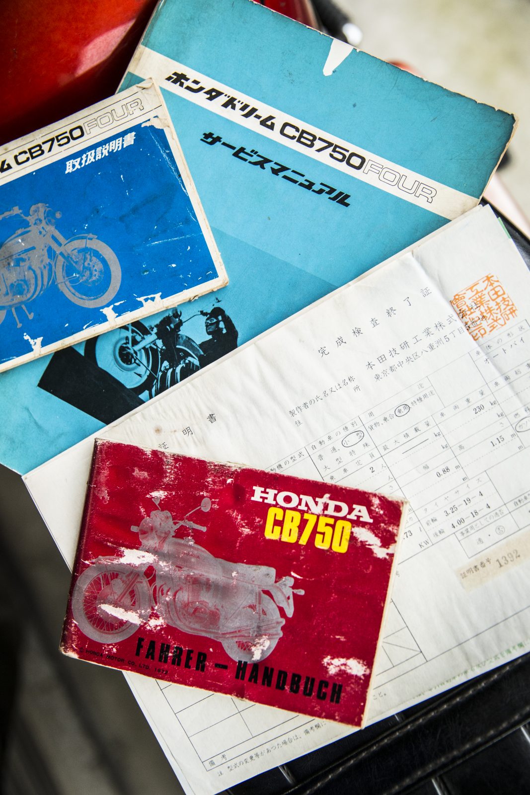 アメリカでも称賛を受けたCB750FOUR。これが当時のオーナーズマニュアルなど。今見てもカッコいい。1969年という時代にどんな名車がほかにも登場したのか、気になるところ。調べてみても面白いかもしれない。