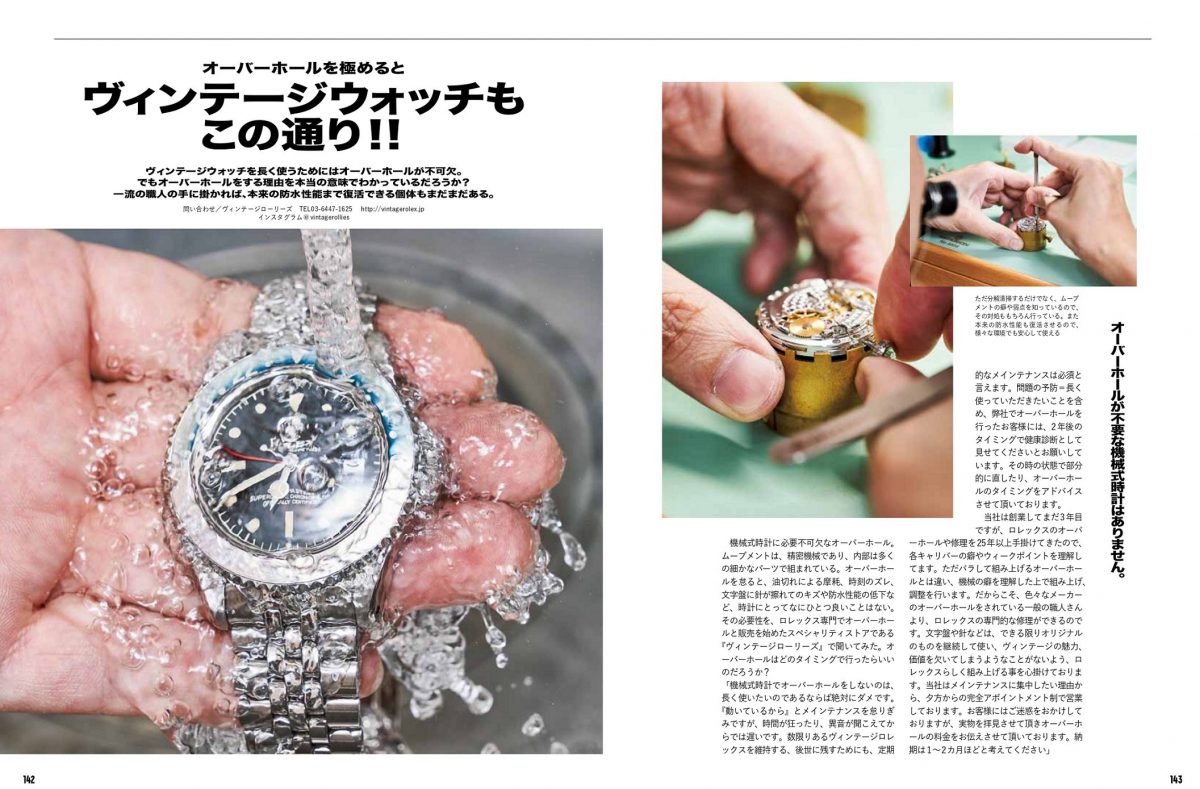 ヴィンテージウォッチを長く使うために欠かせない、プロによるオーバーホールから、自分でできる日頃のお手入れ方法も紹介。さらには革ベルトへの取り換え方も丁寧に解説しているので必読だ。