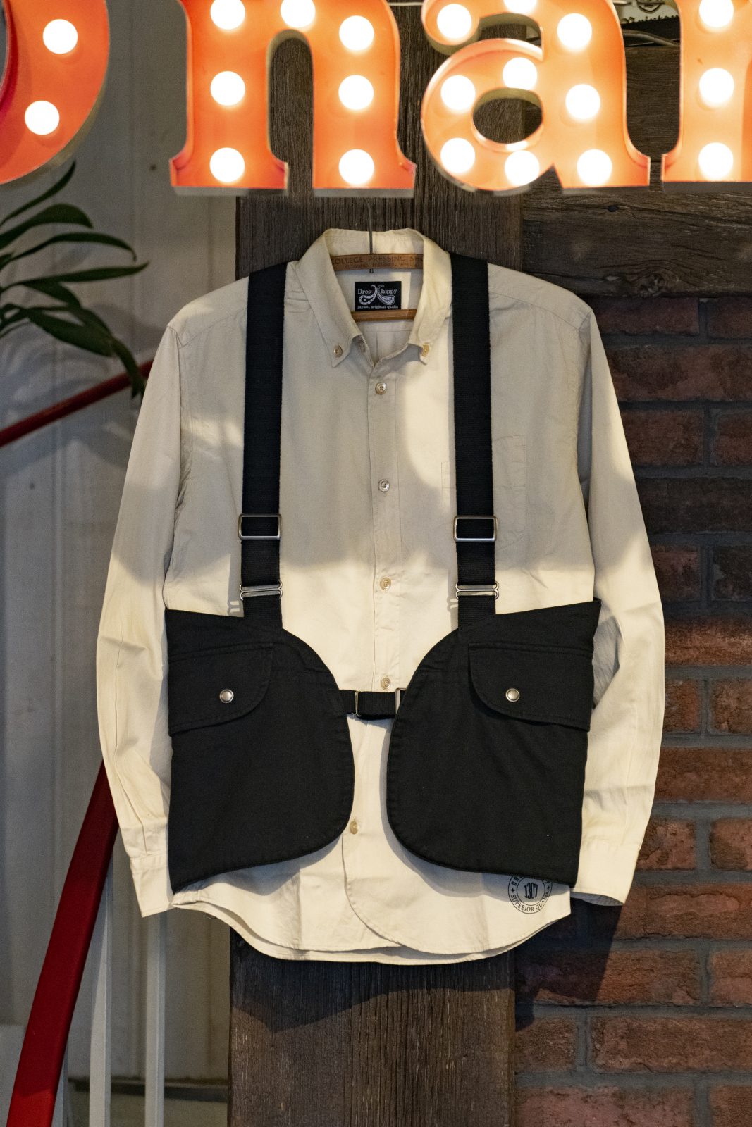 そんなカバン持ち歩きたくない人間の私が今回紹介したいアイテムは、ノーネームがリリースするゲームベスト。デザインソースはハンティング用のベストで、サスペンダータイプのデザインがスマートだ。そもそもこの形状のゲームベストは、どんなアウターの上からでも重ねて着用できるように、極力ゴワつきを抑えるべくして生まれたデザイン。だから獲物を背面ポケットに収納するためだけに特化している。