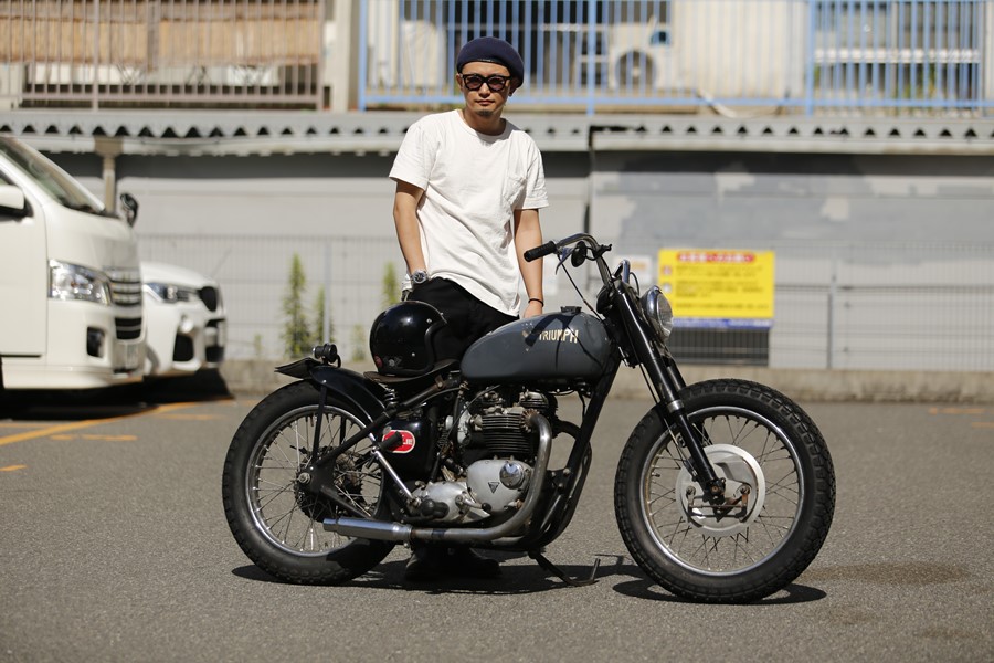 コンパクトにまとめられたボバースタイルは、京田辺にあるブリーカーズが手掛けたもの。軽快に走れることから、休日にはツーリングで和歌山などに出かけることも。ジョッパーズにベレー帽というスタイルも雰囲気抜群。