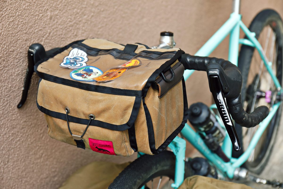 フロントにはワンタッチで取り外し可能なスウィフトインダストリーズのバッグを装備。この中には頻繁に取り出すものを入れているのだそう。日常使いもとても便利だと絶賛。パニアバッグは、今もアメリカにてハンドメイドで生産されるスウィフトインダストリーズを選択。シートは長時間乗っても痛くなりにくいブルックスのものを、ドリンクホルダーは3つ用意されており、ロングライドでも安心の装備になっている(クリーンカンティーンのみ保冷保温が効く)。PAULのディスクブレーキは抜群の制動性で安心感が抜群だ。