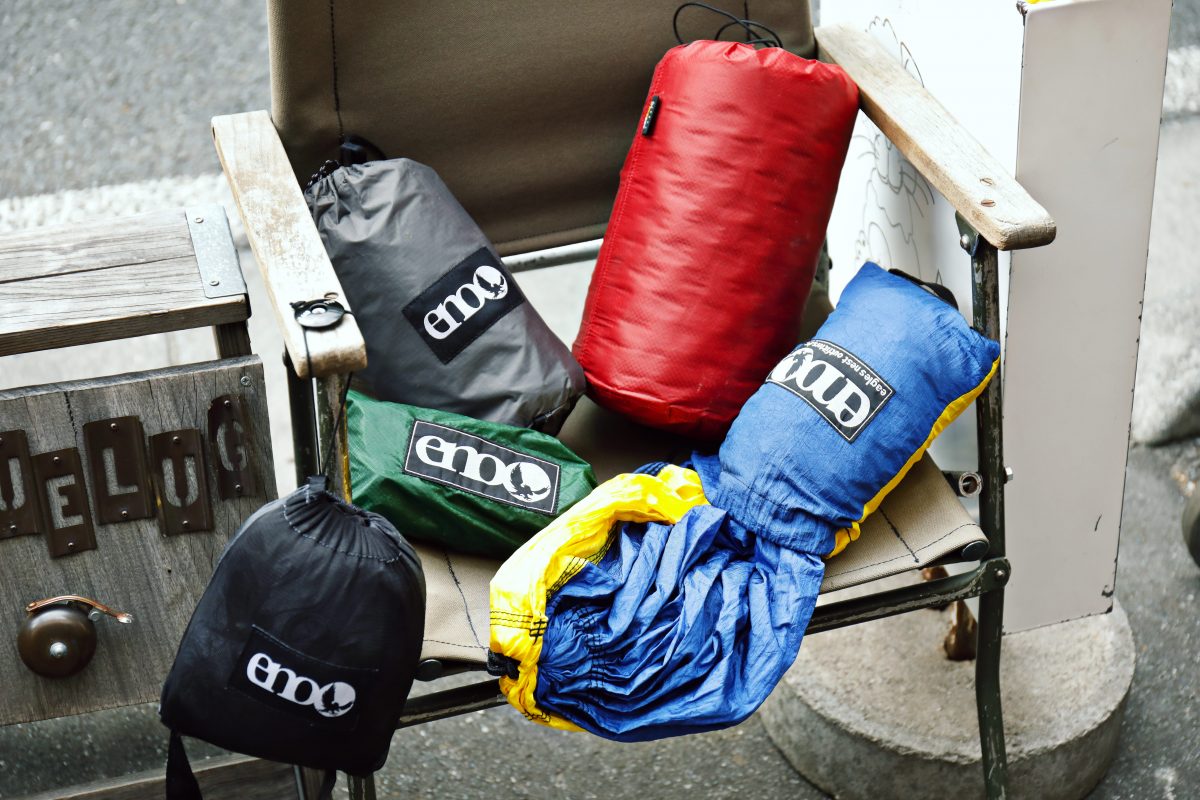 ロングライドをしていると心身ともに疲労するため、多少かさばっても寝具にはとことんこだわる松尾さん。いろいろ試した結果、サーマレストのマットとENOのハンモックを持参。ロングライドでは重量も大事だが、疲労をためないための道具選びも重要になってくる(すべて私物)。