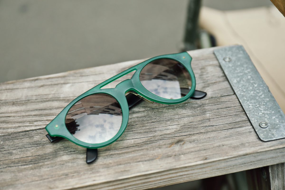 スウォッチのサングラスは、’90年代のデッドストックを購入。いいレンズが入っているわけではないが、キャンツーでは気兼ねなく使えるのもポイントに。確かに高級すぎると気になって仕方ないかも(私物)。