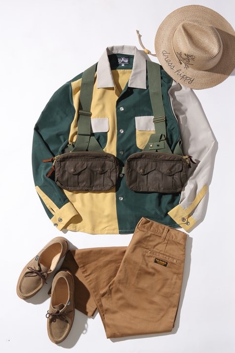 【フィッシングベスト編】流行のレーヨン開襟シャツも、同系色でまとめれば難なくコーデ可能!