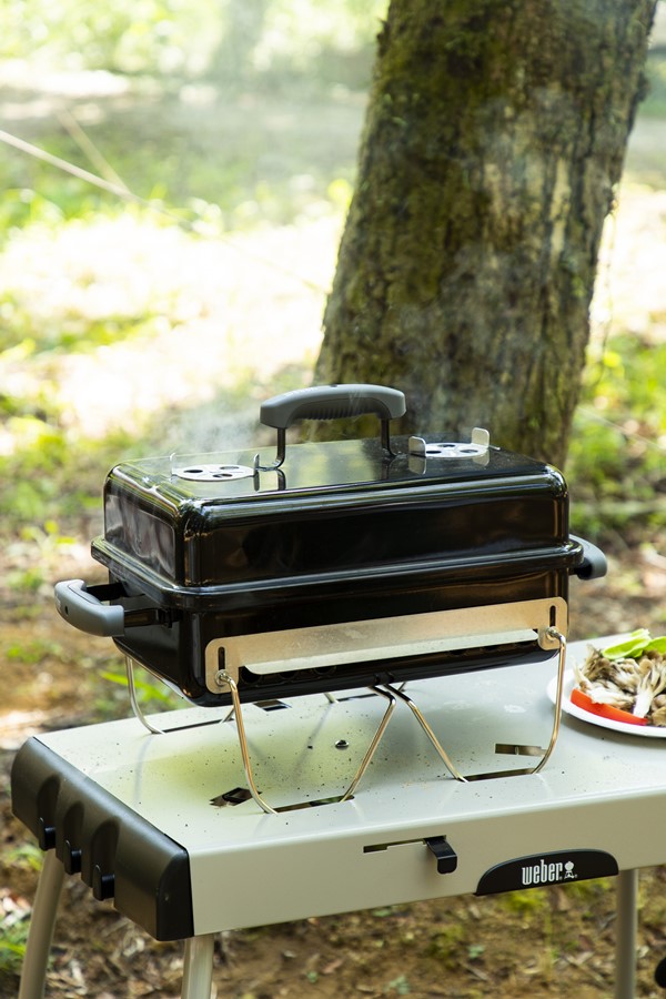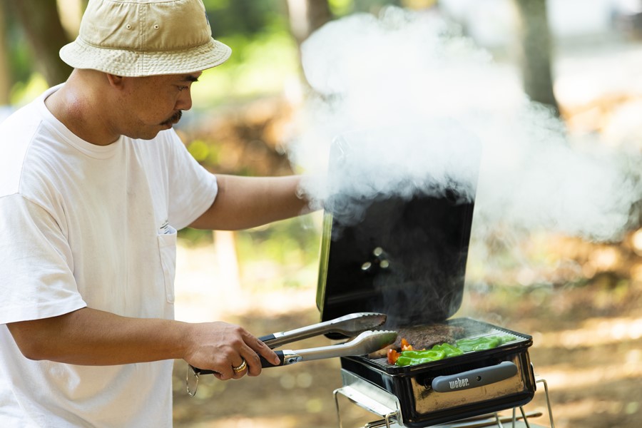 今回は総勢7名と大所帯なので、現地合流のライター佐藤が愛用するウェーバーのゴーエニウエアチャコールグリルも参戦。コンパクトだが四角く効率よくグリルを使える優れもの。