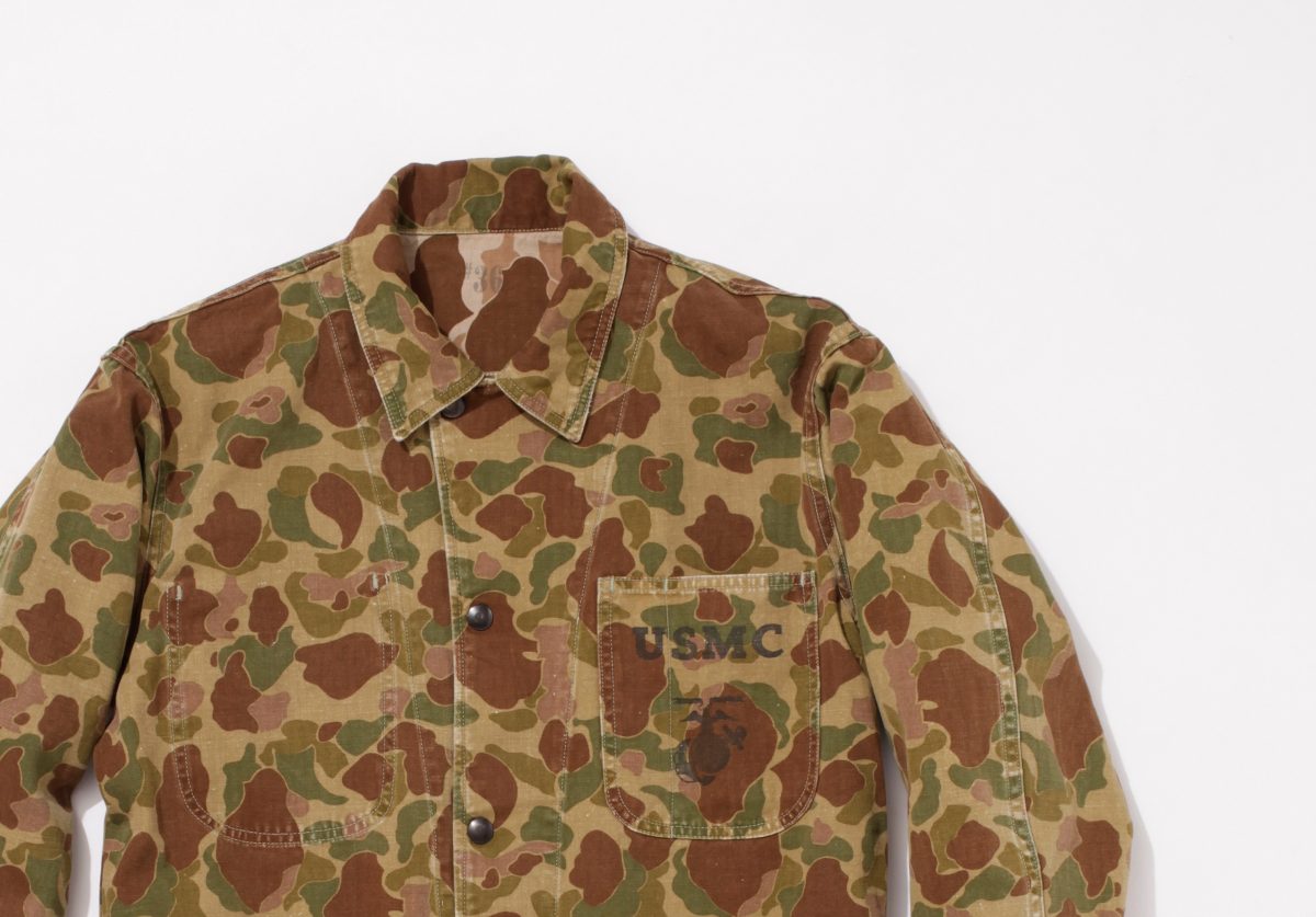 第二次世界大戦時、USMCの兵士が着用したダックハンター迷彩のM-1942ユーティリティジャケット。時代を超えて今も人気を集める迷彩アイテムで、シャツジャケット感覚で着こなせる1枚。