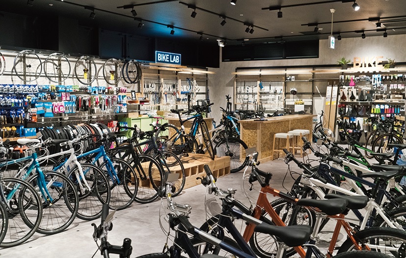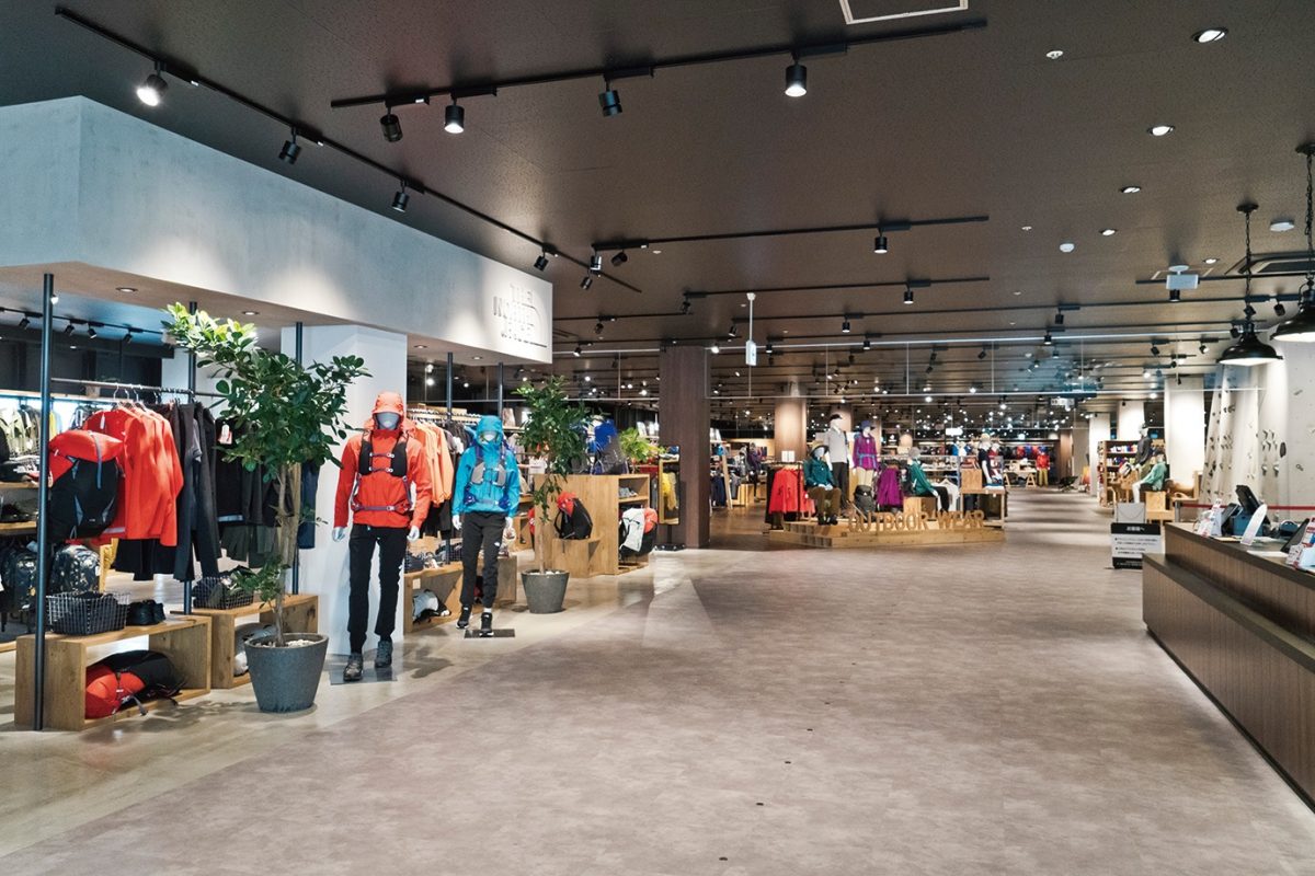 2階はアウトドアのアーバンなスタイルを提案。自転車やシーカヤック、SUPボードからファッションまで揃う。ザ・ノースフェイスの専用コーナーもあり、キッズコーナーも充実している。