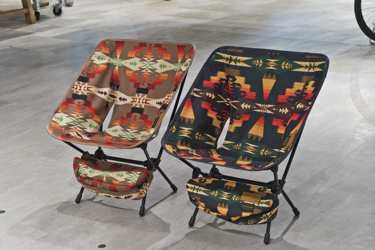 ヘリノックスの定番モデルであるチェアホームにペンドルトンのネイティブデザインを落とし込んだ、スペシャルなコラボモデル。まだ数点ストックあり(取材時)! 各1万9980円
