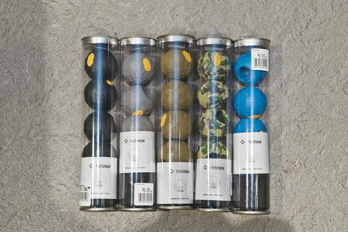 ヘリノックスのタクティカルチェアやコンフォートチェアに対応する足先。ビブラム社とのコラボモデルで各5400円。実際に購入しちゃいました。