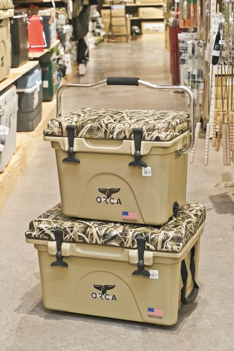 2012年にテネシー州で創業したオルカクーラーズ。迷彩柄も気分はタンでしょ。上/ 20QT(19ℓ)7万200円、下/ 26QT(25ℓ)8万1000円