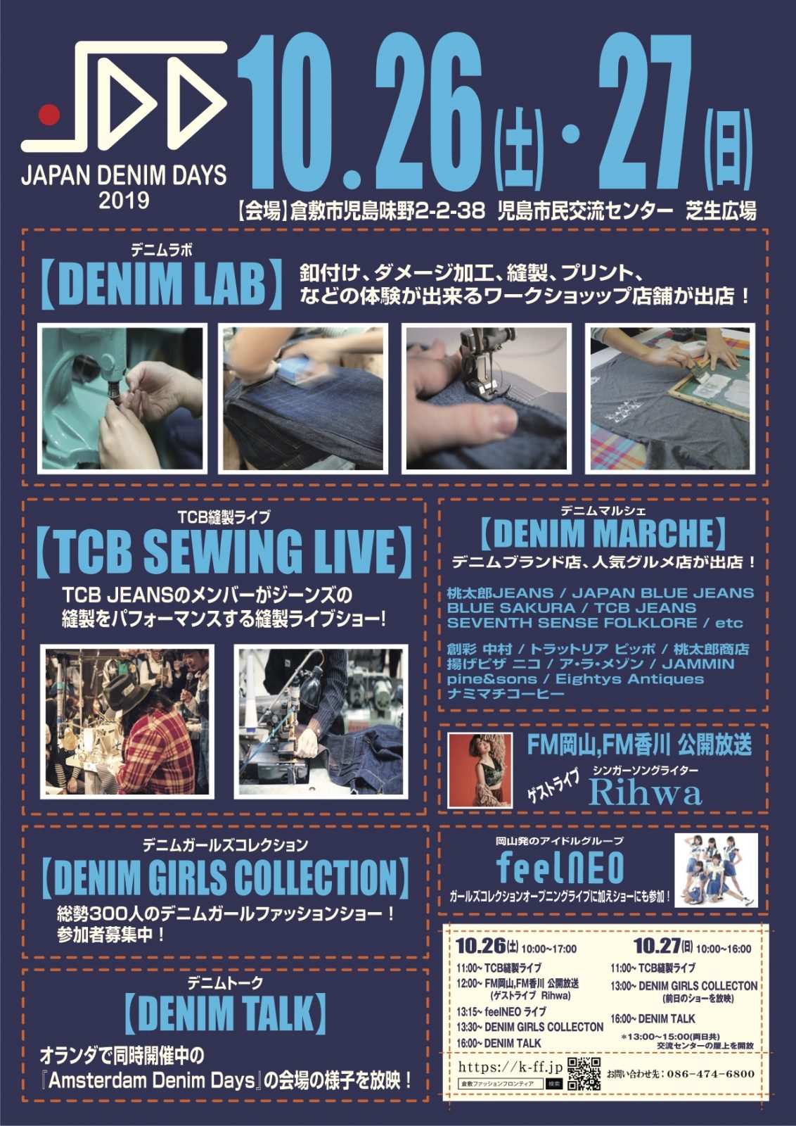 児島の世界に誇る縫製技術を体験できるワークショップから、プロフェッショナルによる縫製ライブショー、人気デニムブランドの即売会などなど、デニム好きにはたまらない内容となっている。