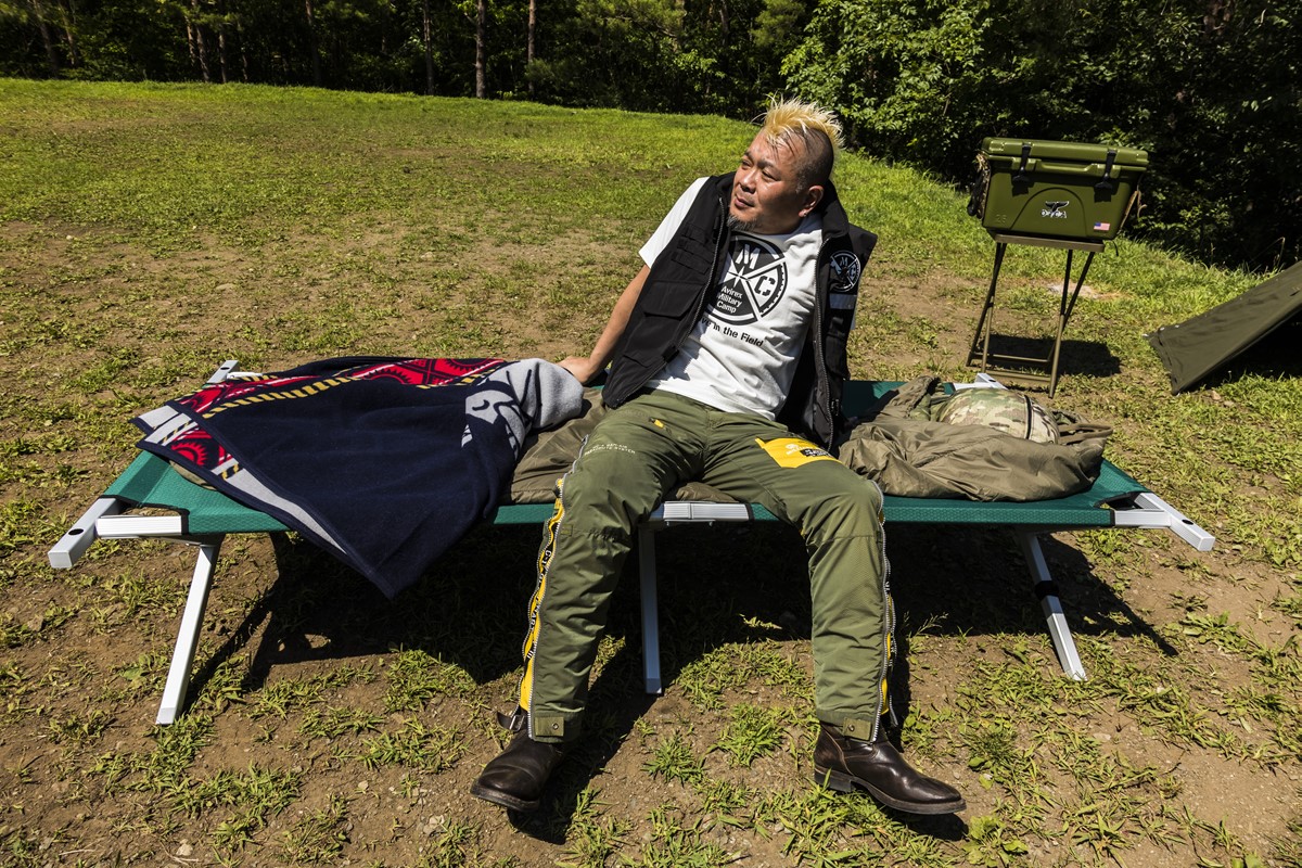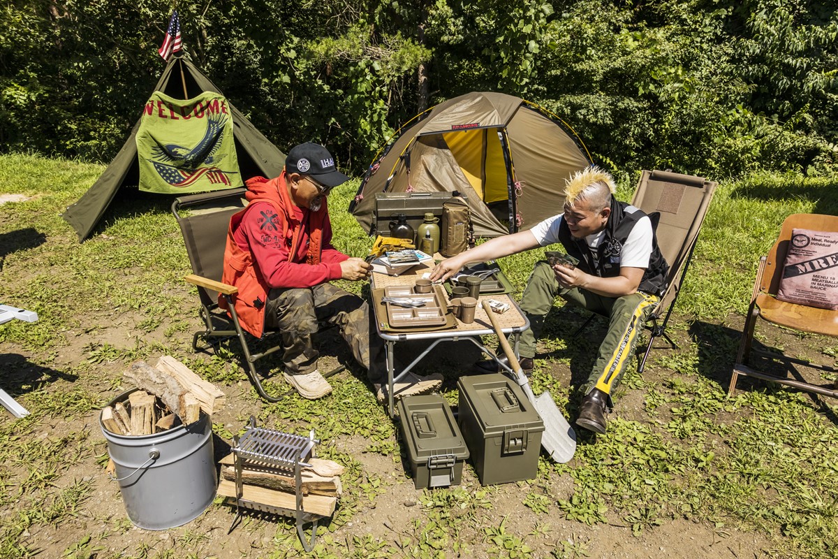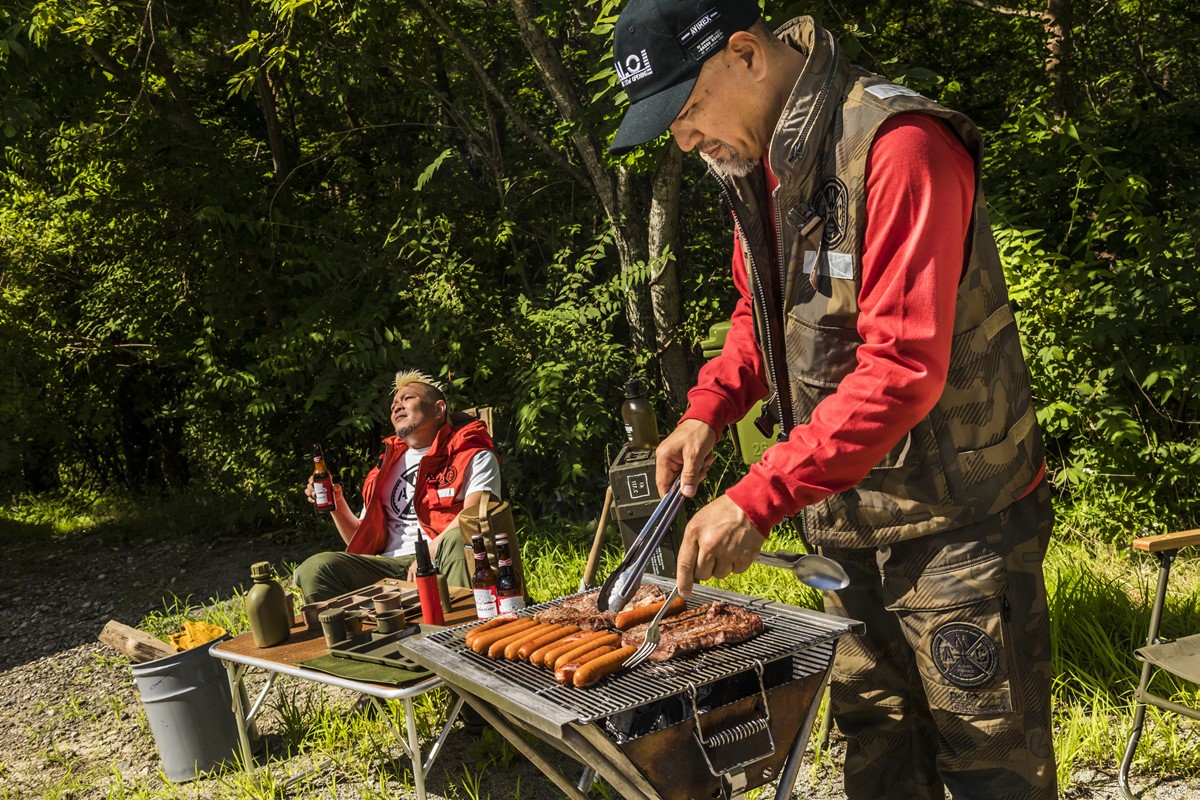 AVIREXのボスであり、“暴走超特急”の異名を持つ下地兄ィと、ライトニング編集部イチのヘビーデューティ好き、モヒカン小川が、ミリタリーテイストのキャンプギアを集めて、スタイリッシュなミリタリーキャンプに挑戦してみた。さて、どんな暴走を見せるのか?