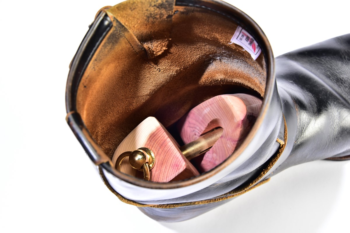 いかん。こんなことでは、逆に革のほうからそっぽを向かれてしまう。もちろん、いままでブーツ用と謳ったシューツリーを使ったことはあるが、数パーツに分かれていて立体パズルみたいだったし、なんと言っても高額で何個も買えないので、一握り(というか1足)の“正室”にしか使えない。数十足のワークブーツが並ぶ“大奥(という名の下駄箱)”を持っている俺には、そんなことは到底できない。大奥とうまく付き合うコツは、「皆を平等に愛してやること」。そうしないと、革だって拗ねるし嫉妬するし、挙句にカビてしまうのだ。