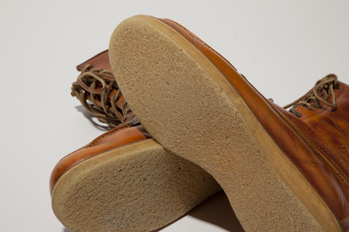 ワーカーからの需要が多く、ハンティングブーツというよりもワークブーツとして履かれた「875」の場合、この製法はそれほど必要とされなかったようで、’66年には元の通り、二つの革パーツの縁を両側から縫い合わせた「おがみモカ」に戻されている。写真の「875」は「かぶせモカ」でつくられた当時の、極めてレアな逸品である。