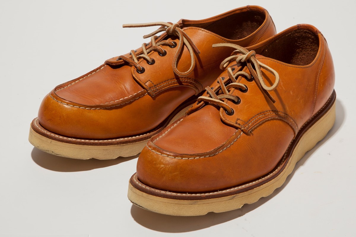 この靴はその時期に作られたもので、つま先が通常の「おがみモカ」でなく、甲のU字型の部分の縫い目に革をかぶせた「かぶせモカ」で作られている。止水性を狙ったこのデザインはハンティングブーツによく見られる。またレッドウィングでも、一部のハンティングブーツにこの製法を使っており、その応用でもあった。