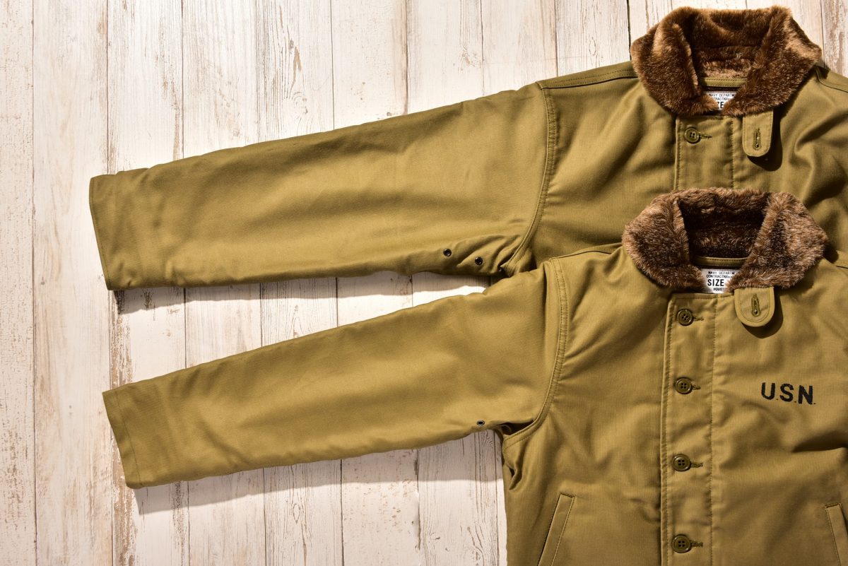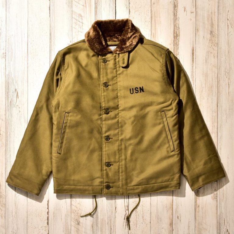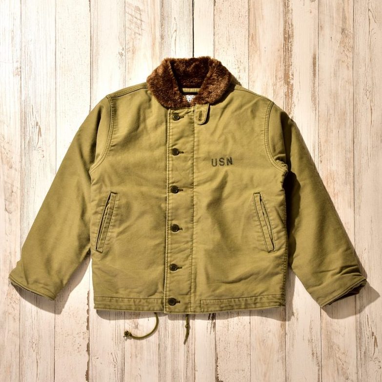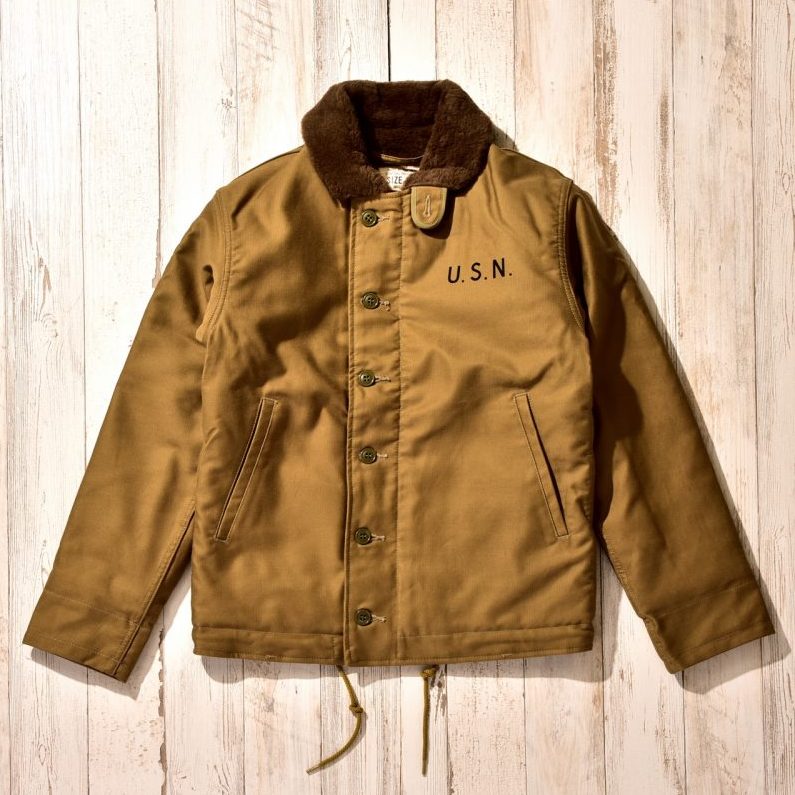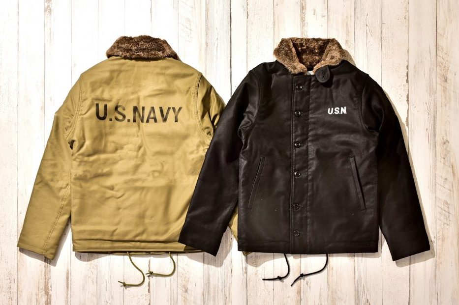 アメリカンカジュアルからバイカーファッションまで、多くの人に支持されているのが、1940年代にアメリカ海軍が採用したN-1デッキジャケットだ。冷気に晒される軍艦の甲板上での作業に従事するデッキクルーたちが着用していた。使われる生地はジャングルクロスと呼ばれる肉厚で織りの細かい生地を使い、ライニングはアルパカライナーとなっている。ちなみにこのモデルが登場する以前は、前立てがジッパー式やフック式のもので、生地のネイビーカラーのジャングルクロスが使われていた。5つのモデルをチェックしよう!