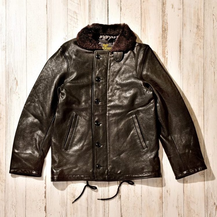 渋鞣しを施した羊革を使ったN-1デッキジャケット。布帛に比べ重厚感のある佇まいとなっている。内部はアルパカライナーではなくキルティングライナーとなっており、保温性と袖通しの良さを実現。5万4780円
