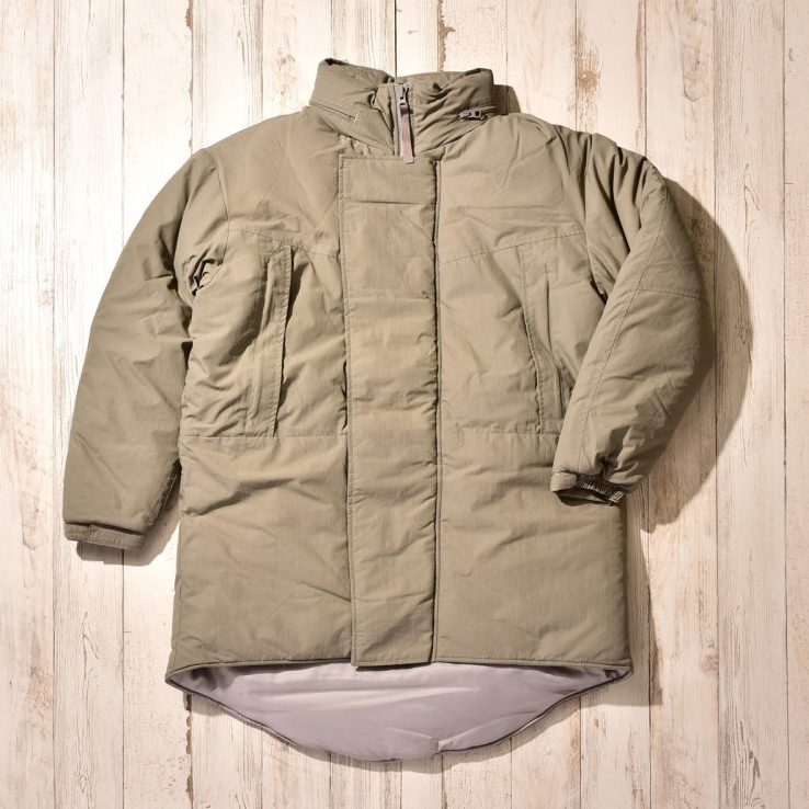 アメリカ陸軍が採用する拡張式寒冷地被服システムである ECWCS(Extended Cold Weather Clothing System)の第三世代のLEVEL7ジャケット。これも先ほどのPCUと同様に、7種類のトップスと5種類のボトムから構成された寒冷地用のレイヤリングシステムで、最終的に羽織る防寒アウターだ。ライニングの中綿素材には3Mシンサレートを採用。1万8480円