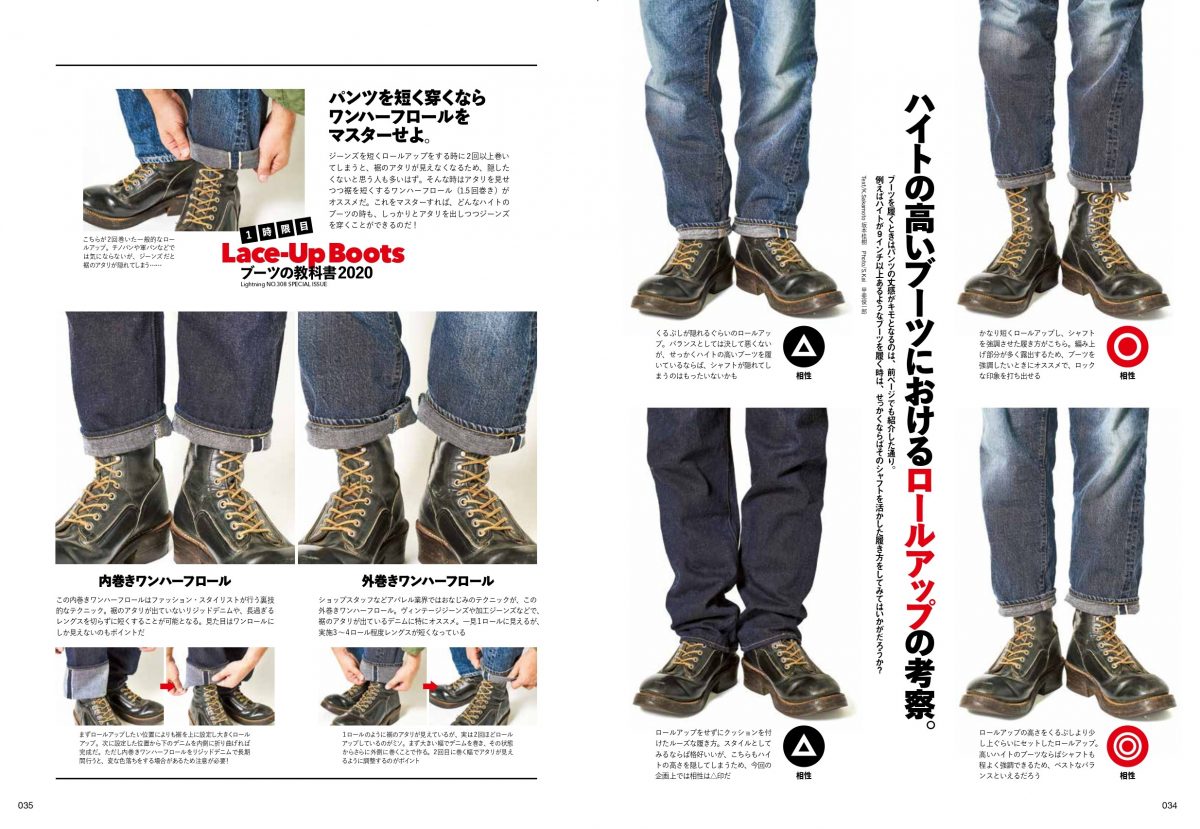 ブーツをカッコよく履きこなすには、パンツの裾の処理の仕方を習得しなければならないというのは、ブーツ愛用者ならご存じだと思いますが、マスターしていない人も多いのでは? そんな、ブーツの最新情報だけでなく、よりブーツをカッコよく履きこなすためのメソッドもたっぷり収録した「Lightning 2019年12月号」、お洒落度アップには欠かせません!