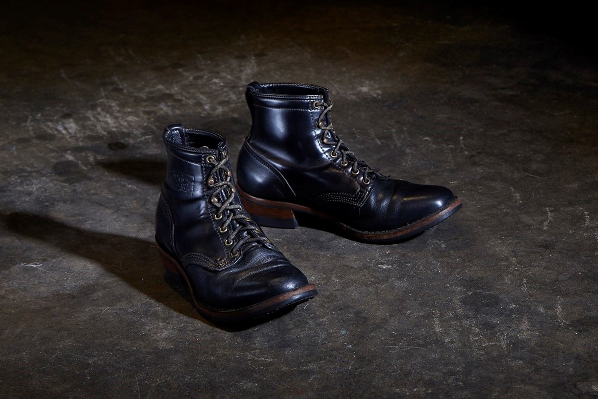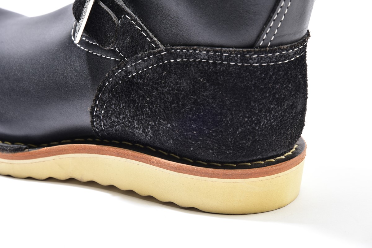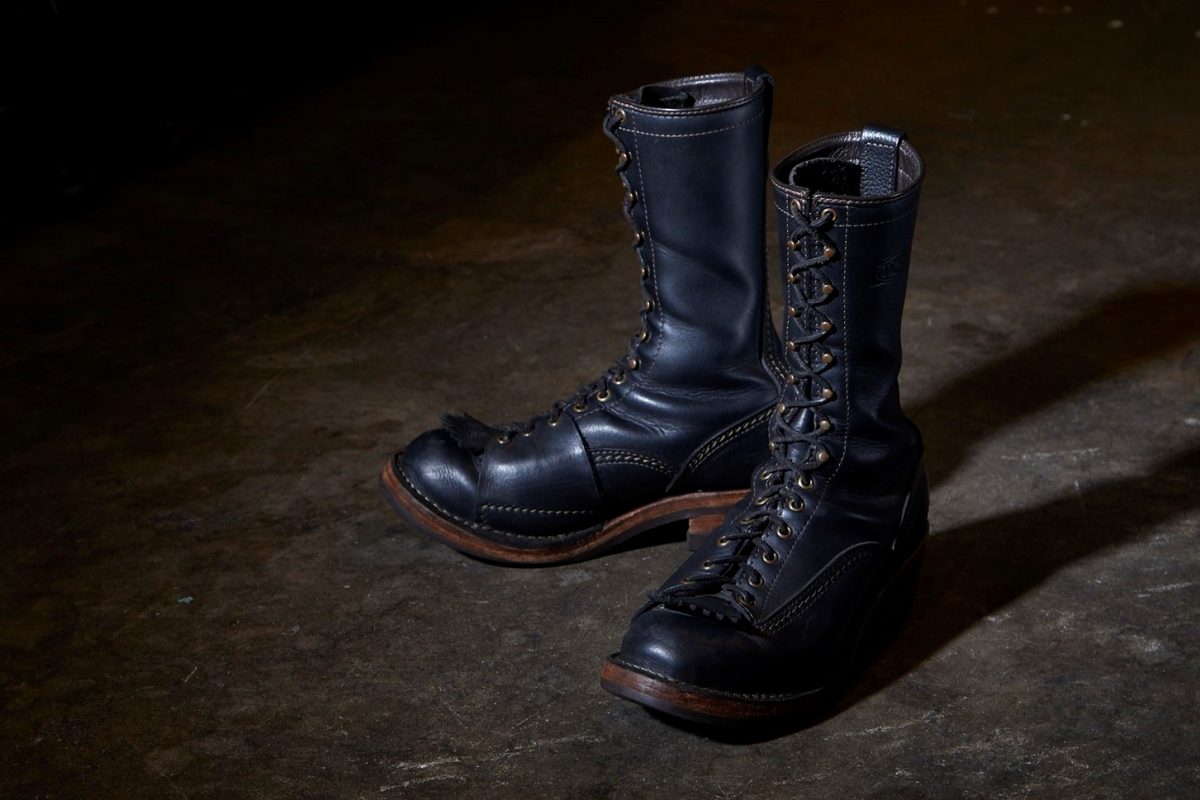 こちらは、そのボスをベースにカスタマイズしたもの。カウハイドの表革と同じ黒のラウアウト(裏革)をバランス良く配置。ハイトの高さは脱ぎ履きもしやすい9インチ。ソールはクッション性に優れたトラクションソールに変更。本来持つ無骨さとカジュアルな雰囲気が相まって、タウンユースでも気軽に履ける仕上がりとなっている。