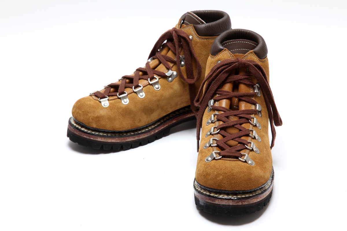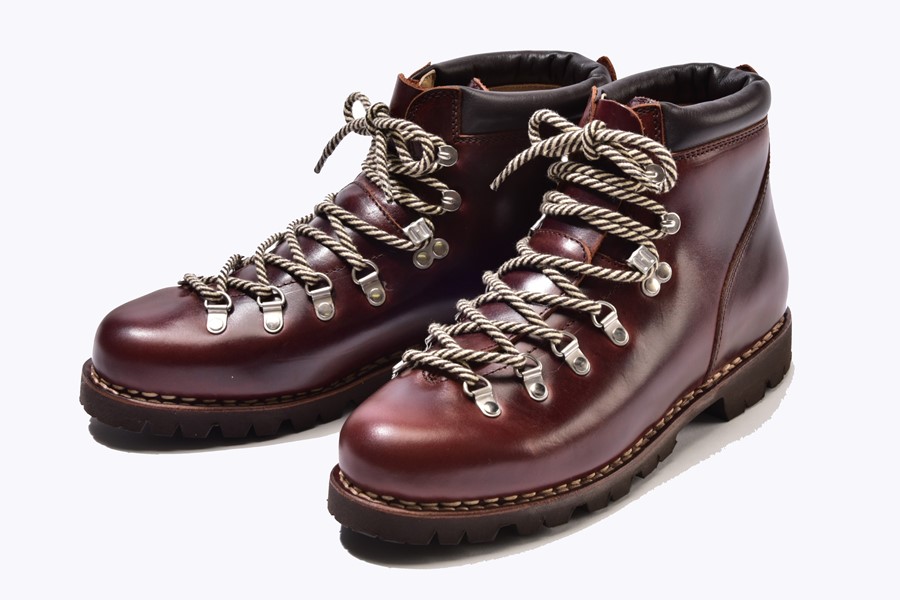 写真はパラブーツの登山靴ブランド「ガリビエール」から1992年に発売された名作の誉れ高い一足「アヴォリアーズ」。多くのリクエストに応える形でパラブーツネームで復刻。登山靴の原型となる細く長いシャモニーラスト、オイルドレザーを使い、堅牢なノルヴェイジャン製法での仕上げ。スマートだから街にも映える。