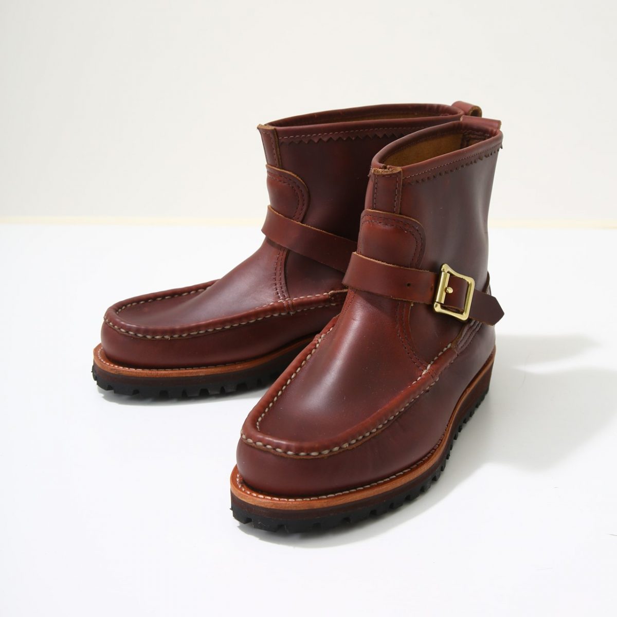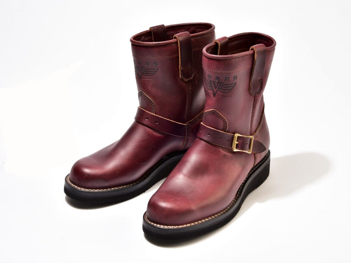 「Short shift 8inch」は色合いも美しいホーウィンクロムエクセルバーガンディを用いた8インチのウェスタンブーツに、インステップベルトを配置することでエンジニアスタイルに仕上げた「ヴァイバーグ(ビバーグ)」を代表するスタイル。ソールはグリップ力の高いビブラム社ヘラルドソール。シャフト前面にブランドのロゴマークが刻印される。