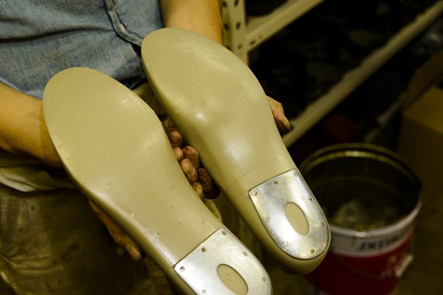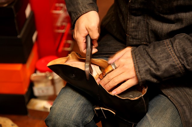 「確かに靴は足が細いほうが見栄えはしますが、その見え方は足ではなく靴自体のパターンによるところがかなり大きいと思うんです。パターン次第では細い足が逆に広がって見えることもありますし、ウエアと一緒でパターンってとても重要なんですよ。このパターンを活かすために、通常機械で行うことの多い『吊りこみ』という作業を自分の手で行っています」