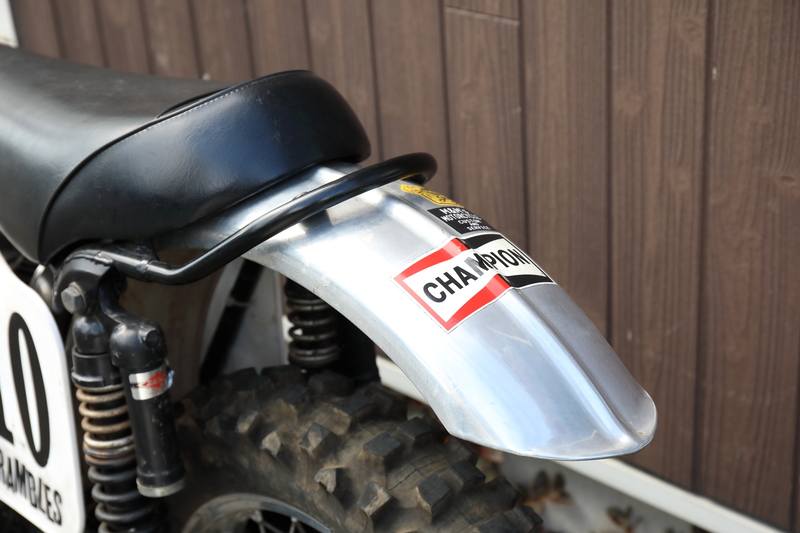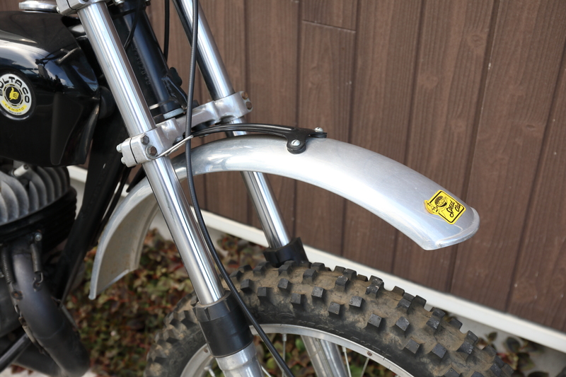 フロントフェンダーはもともと樹脂製が付いていたが、アルミフェンダーに変更。これだけでもグッとVMXらしい雰囲気に仕上がるのだ。