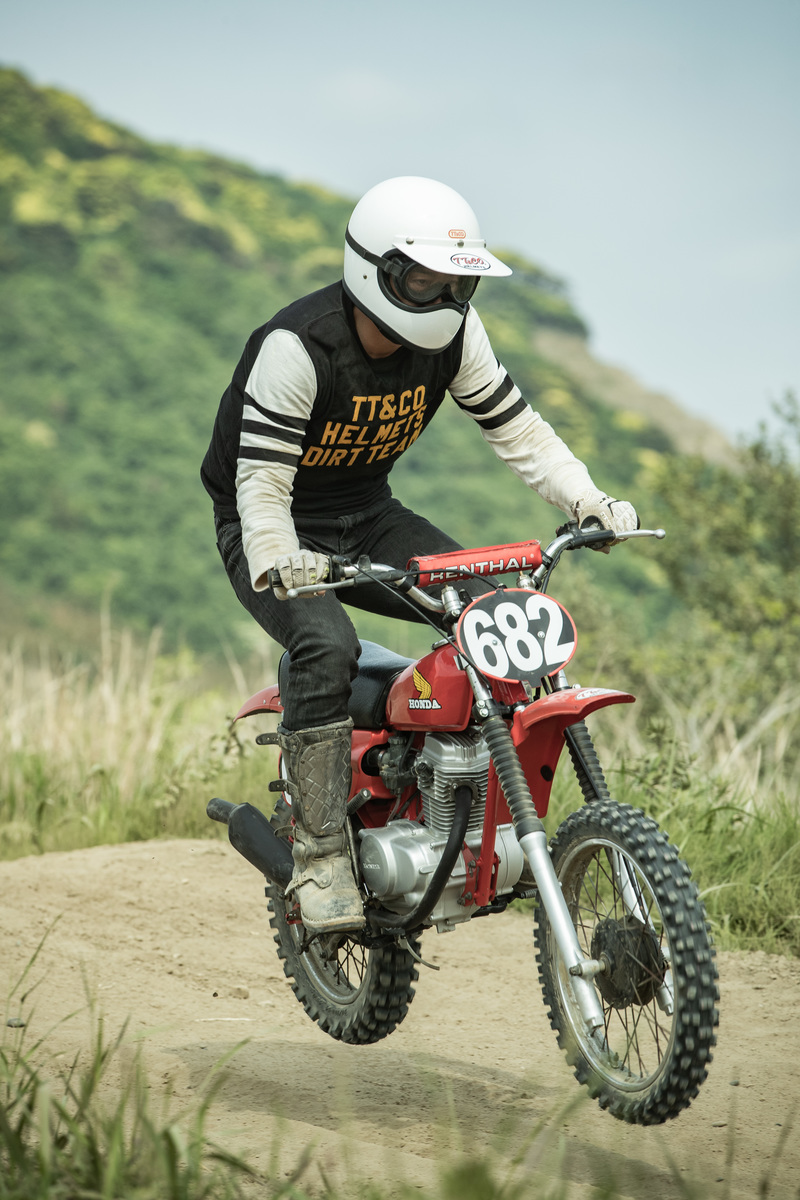 新世代バイカーとして注目されている櫻井さんの愛車はホンダXL350。どこか力の抜けた飄々としたキャラクターに、クラシックながらもスタイリッシュさを兼ね備えたXL350がマッチしている。「旧車のハーレーにも乗っているからこそ、XL350のようなVMXは気張らないで乗れる魅力があります」