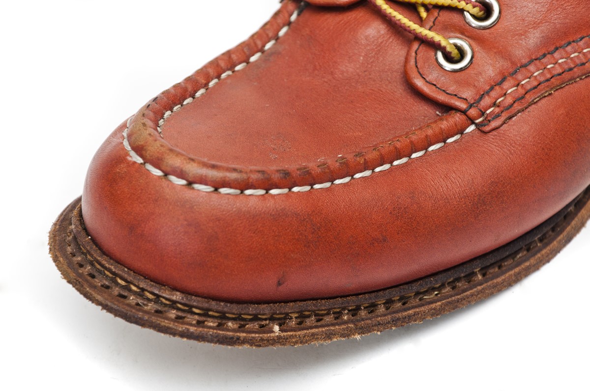 また製法によって、気を使うのも大切。ワークブーツから紳士靴まで定番のグッドイヤーウェルト製法であれば、何度もオールソール交換ができるが、ステッチダウン製法の場合は、少し事情が異なる。何度も繰り返すうちにステッチ穴が増えて革が切れてしまうので、オールソール交換が必要になるまで履きこまず、こまめにメインテナンスを行うのがベスト。グッドイヤーウェルト製法なら写真くらいがメンテのギリギリラインだ。