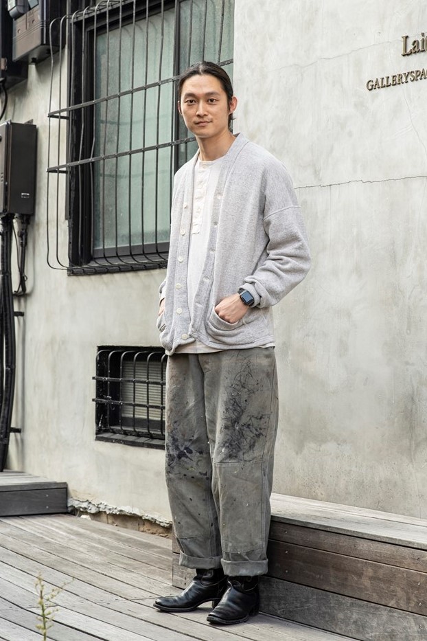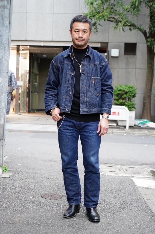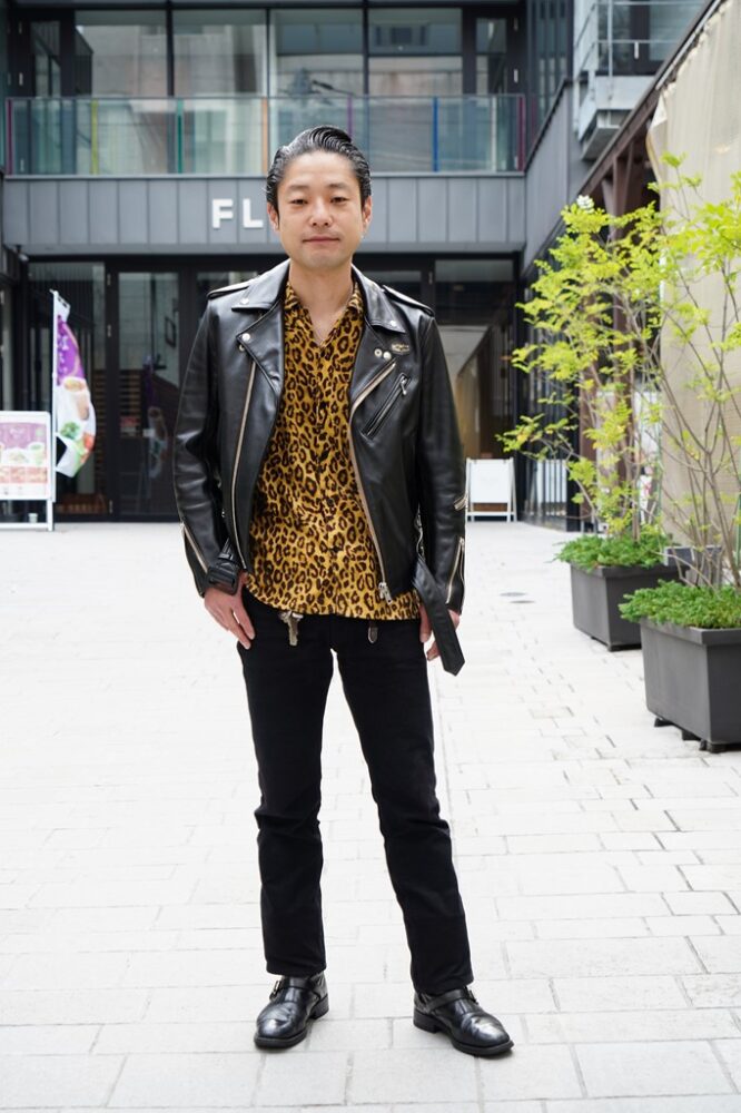 名店ブラスのクラフトマンであるムンさんは、オリジナルのウエスタンブーツを中心にしたコーディネート。ウエスタンブーツはコーディネートが難しいと敬遠しがちであるが、シンプルな装飾とブラックカラーを選べば、このようにスンナリとコーデできることを証明してくれた。