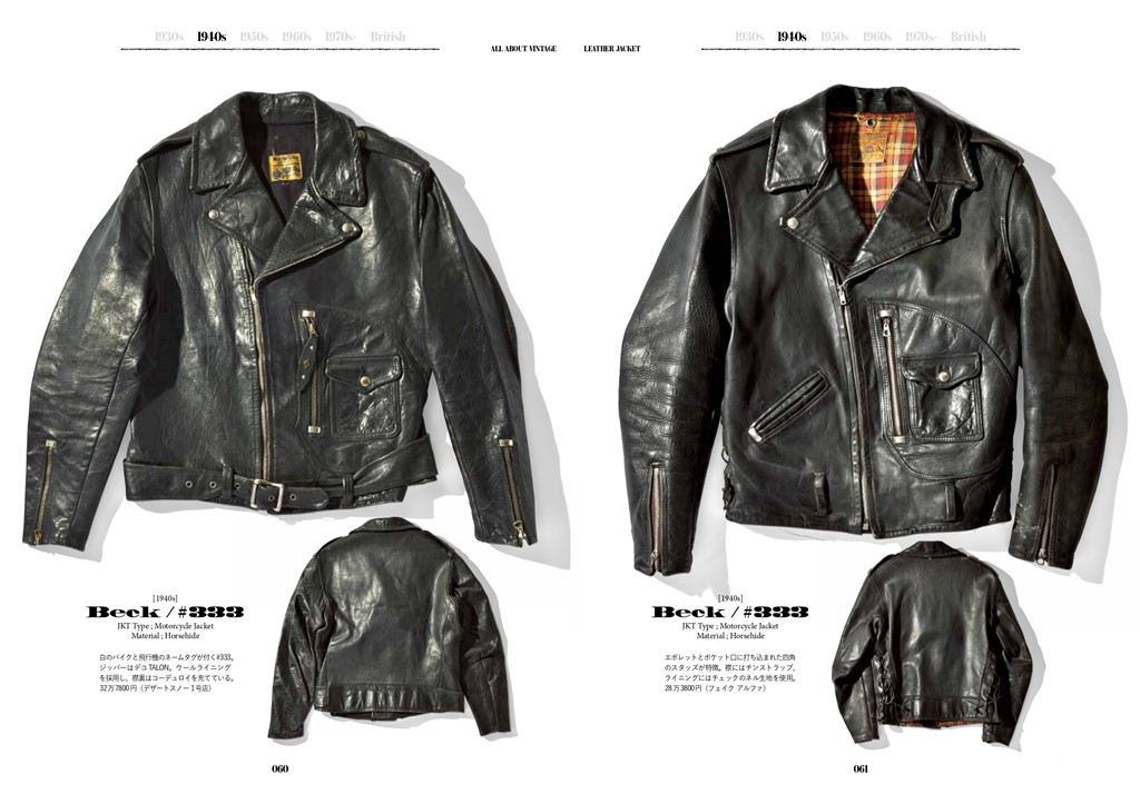 とかくフロントのデザインに目がいきがちなレザージャケットだが、背面のプリーツや革の継ぎなども、デザインの変化が現れる重要なポイント。そこで、すべて背面の写真も掲載し、地味ながらも味わい深い背面意匠の変遷を堪能できるようになっている。