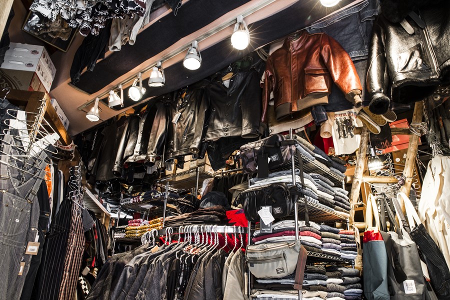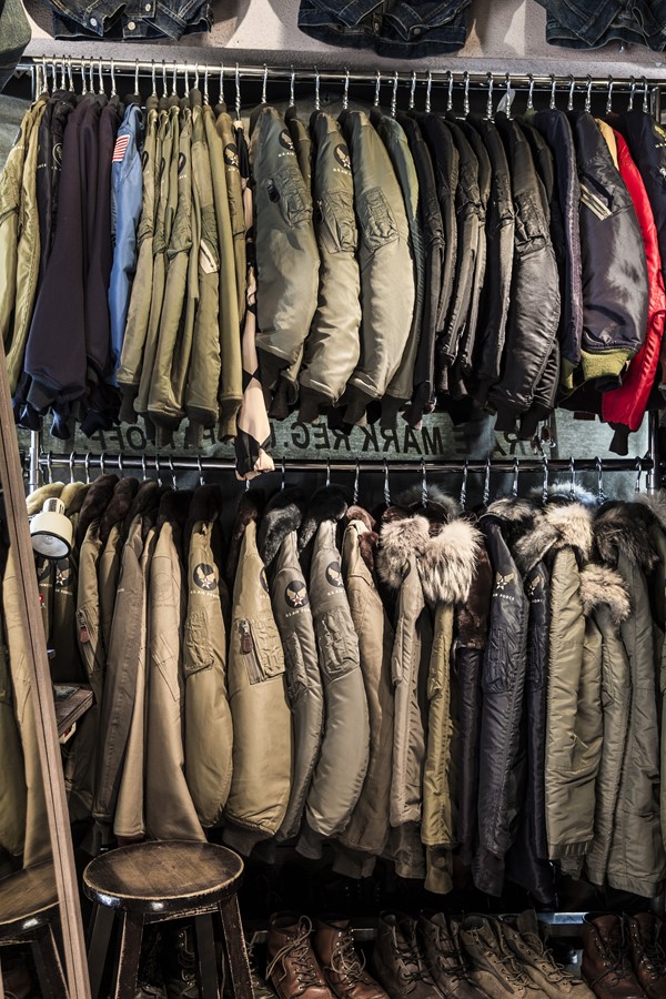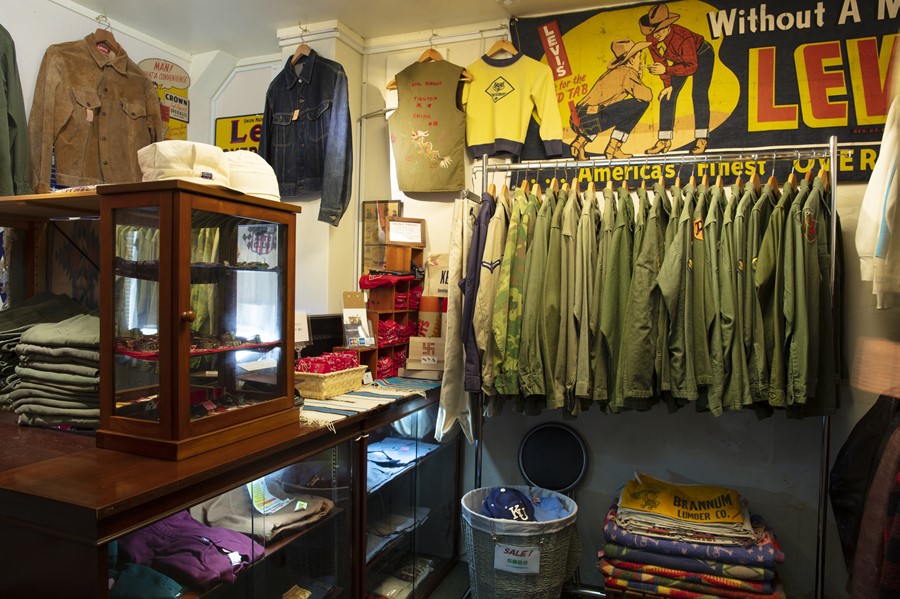 「THE VINTAGE SPIRITS」をショップのコンセプトにしたデニム、ワーク、レザーなどアメリカンカジュアル一筋のジャンキークラシックス。創業は1992 年と四半世紀を越え、横浜元町のアメカジシーンを牽引してきた。数年前までヴィンテージウエアの取り扱いもあったようだが、年々減少していくことから、現在はディスプレイとして店内一部に飾られている。